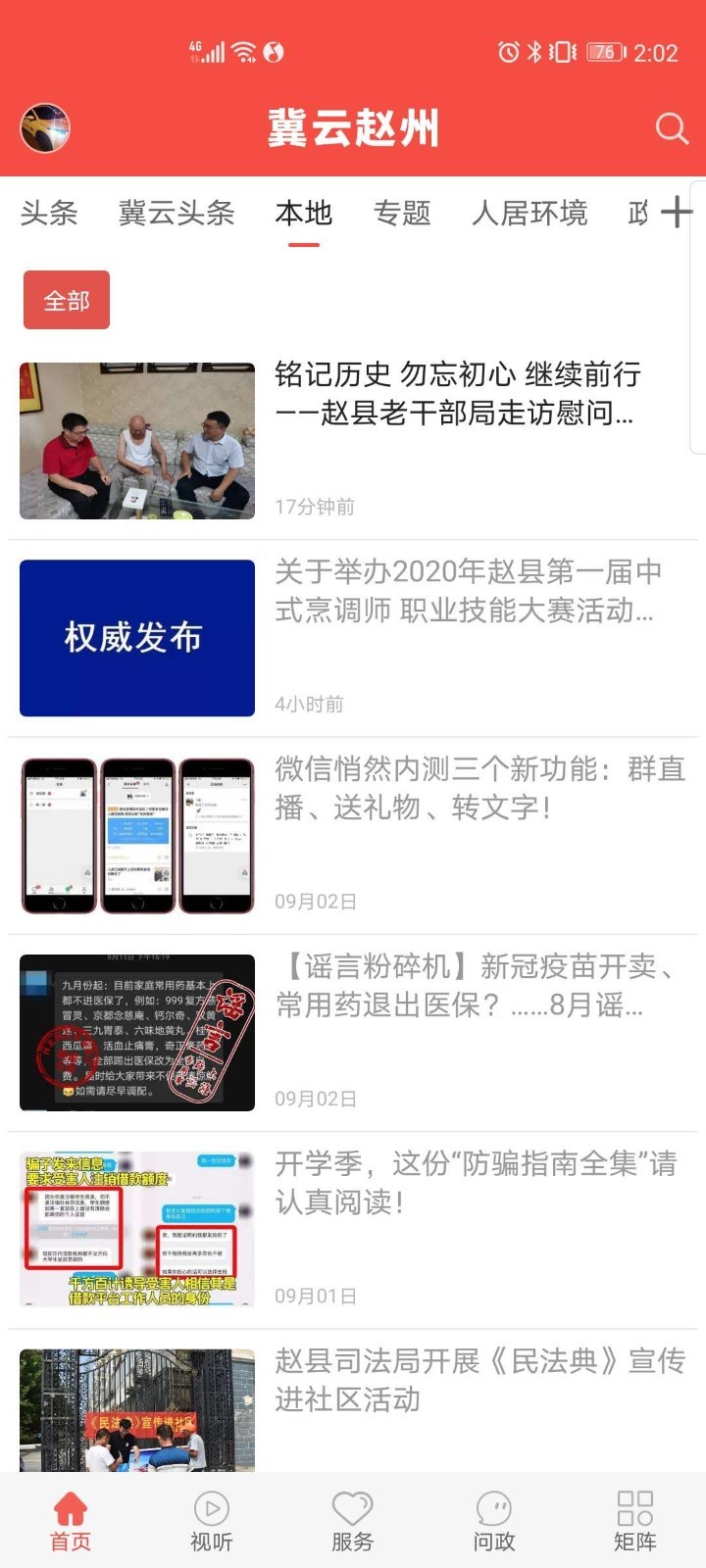 如发现版本老旧,欢迎邮件反馈toususpam#51wangming(dot)com,或移步冀云赵州官网下载最新版冀云赵州安卓版介绍冀云赵县app是一款本地新闻阅读软件,是把资讯、新闻、视频新闻等结合在一起,推送新鲜的本地资讯。还能够提供政务、民生一站式服务,为用户带来参与式、互动式的全新闻体验。