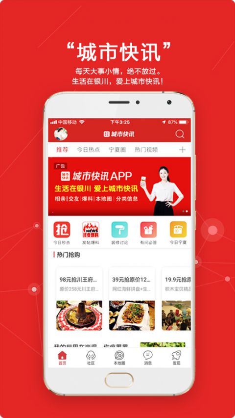 如发现版本老旧,欢迎邮件反馈toususpam#51wangming(dot)com,或移步城市快讯官网下载最新版城市快讯安卓版介绍城市快讯APP是一个集生活信息、消费经验、人脉关系为一体的城市社区。是宁夏地区专业的社区门户,全面及时的楼市资讯、房产信息、美食推荐。