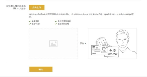 按要求上传本人身份证正面照片、本人身份证背面照片、手持本人身份证正面照和个人签字,点击“确定”进行上传,等待平台认证通过。
